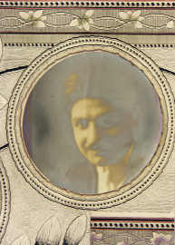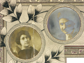 Coppia di dagherrotipie ai vapori di mercurio raffiguranti uomo e donna montati su pannello in carta decorata a motivi vegetali, Napoli, metà XIX secolo