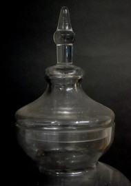 Coppia di potiches con coperchi in vetro trasparente, XX secolo, cm h 60