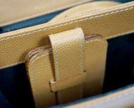 Cordon, valigetta in pelle color cammello a vari scomparti interni, finiture in metallo dorato, cm 28x31x9, (segni di utilizzo).