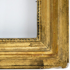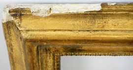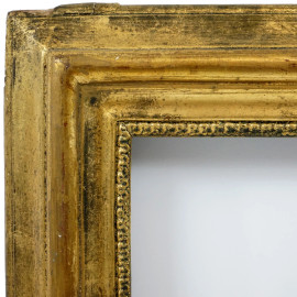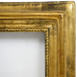 Cornice in legno dorato con battuta interna dentellata, XIX secolo, misure ingombro cm 55,5x64, misure luce cm 41,5x50, (difetti).