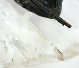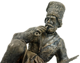 Cosacco russo, scultura in argento, bolli Russia, cm 7x13, base in cristallo di rocca, (base rotta)