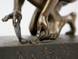 Da Antoine-Denis Chaudet (1763-1810), Cupido e la farfalla, scultura in resina dipinta, cm 21x14x9, XX secolo.