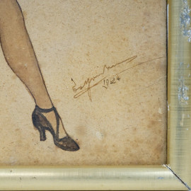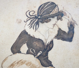 Donna con cappello e pelliccia, inchiostro bruno su carta, cm 27x19,5, firmato e datato 1924, entro cornice.