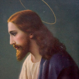 Gesù, multiplo a colori su cartoncino, cm 36,5x78, XX secolo, entro cornice.