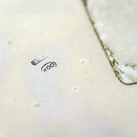 Grande centrotavola in argento 800 con profilo lavorato a foggia di grandi foglie sbalzate, punzone Milano, seconda metà XX secolo, cm 9x54, peso gr. 2040 circa, (segni del tempo).