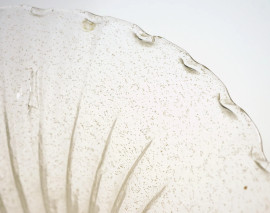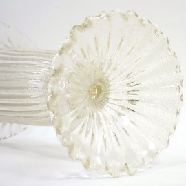 Grande vaso in vetro di Murano trasparente a coste verticali, orlo svasato, lavorazione a bolle ed inclusioni a foglia d'oro, cm h 60x31,5, XX secolo.