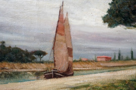 Il Candiano - Ravenna, olio su tela, cm 48,5x81,5, firmato Bertelli.