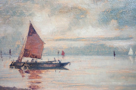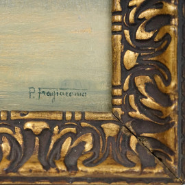 Imbarcazioni, olio su cartone, cm 18x28, firmato, entro cornice.