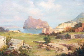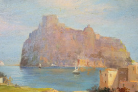 Ischia, olio su compensato, cm 35x50, firmato in basso a destra, entro cornice.