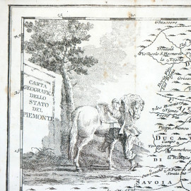 "La carta geografica dello Stato del Piemonte" tratta da "Atlante novissimo, che contiene tutte le parti del Mondo[…]", incisione, cm 35x45, XVIII secolo, entro cornice, (macchie sulla carta).