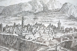 "La città di Cuneo nel Principato del Piemonte" tratta da "Lo stato presente di tutti i paesi e popoli del mondo", incisione, cm 18,5x37,5, XVIII secolo, entro cornice, (macchie sulla carta).