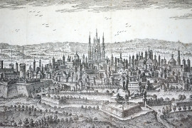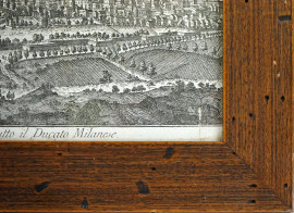 "La città di Milano Capitale di tutto il Ducato Milanese", tratta da "Lo stato presente di tutti i paesi e popoli del mondo", incisione, cm 19x33, XVIII secolo, (difetti sulla carta).