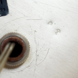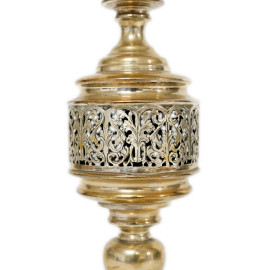 Lampada da tavolo in onice ed argento, seconda metà XX secolo, cm h 31, fusto con fascia a traforo.