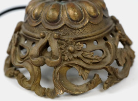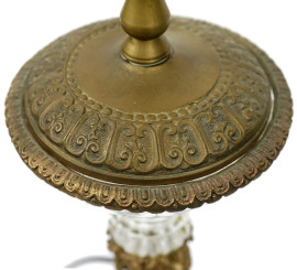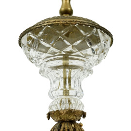 Lampada in cristallo controtagliato e bronzo, cm h 53, XX secolo.