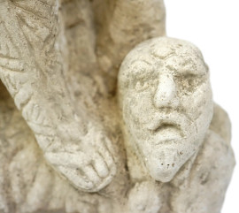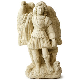 L'Arcangelo Gabriele sconfigge il Demonio, scultura in pietra leccese, cm h 55x28x15, (difetti)