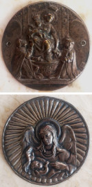 -Due antichi bassorilievi in argento 800, diam. max cm 2,5, peso gr.8