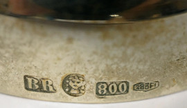 Lotto composto da tre accendini ed un posacenere in argento, tre marcati Brandimarte, XX secolo, alt.max cm 13, peso netto del posacenere gr. 206 (difetti)