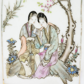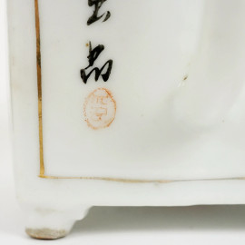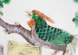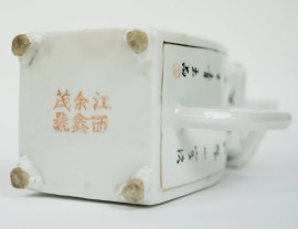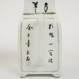 Lotto composto da un vasetto ed una teiera in porcellana con decori di personaggi e floreali policromi, Cina, XX secolo, alt.max cm 27,5