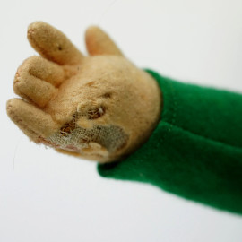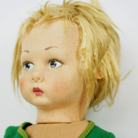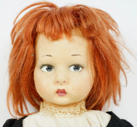 Lotto di due bambole diverse in tessuto e cartapesta, alt.cm 50, XX secolo, (difetti).