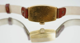 Lotto di due orologi da polso da donna in oro 18 KT e 14 KT con cinturini in pelle.