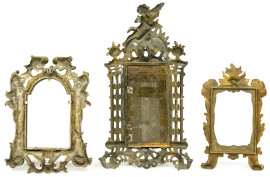 Lotto di tre cornici in materiali diversi, misure max cm 40x22, (difetti).