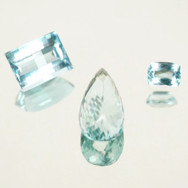 Lotto di tre pietre acquamarine : una a goccia da 14 CT, una rettangolare grande da 15 CT e rettangolare piccola da 2,5 CT.