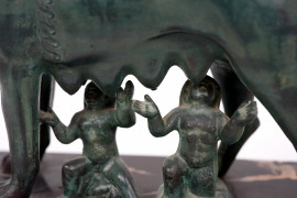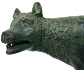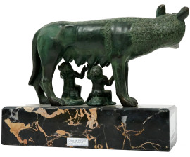 Lupa capitolina, trofeo U.S. Acli, Dino Penazzato, Roma 1° Maggio 1966, scultura in metallo, base in marmo nero, (difetti).
