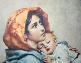Madonna del riposo, stampa a colori da Roberto Ferruzzi, cm 40x30, XX secolo, entro cornice, (difetti sulla carta).