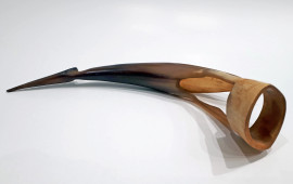 Manifattura italiana design anni 30, scultura in corno raffigurante airone stilizzato, altezza cm 28