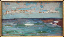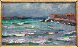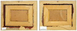 Marine, coppia di dipinti ad olio su cartone, cm 10x15, di cui uno firmato, entro cornici.