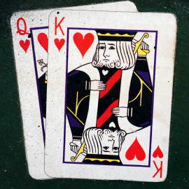 Orologio Lady Luck Casino, anni '80, in legno dipinto e collage di carte e fish, diametro cm 46, (difetti).