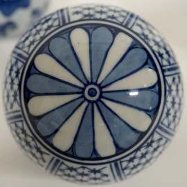 Otto sfere in ceramica bianca e blu, XX secolo, cm h 10