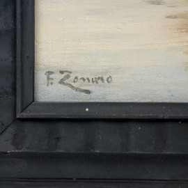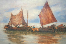 Pescatori, olio su cartone, cm 25x35, firmato, entro cornice.
