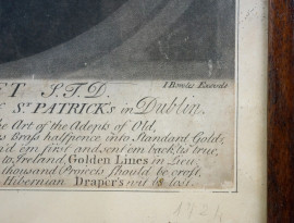 Peter Pelham (c. 1695-1751) e John Bowles (1701?-1779), Jonathan Swift, incisione, cm 34.5x24.5, (difetti)