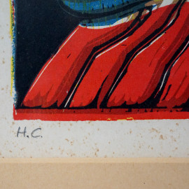 Busto di donna da Cranach il Giovane, linolegorafia, cm 30x24,5, esemplare H.C., entro cornice, (macchie).