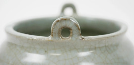 Piccolo incensiere a tripode in porcellana smaltata color Celadon, cm h 11x12,5, Cina, XX secolo.
