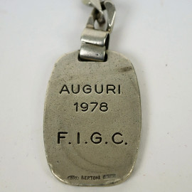 Portachiavi in argento F.I.G.C, Federazione Italiana Gioco Calcio, 1978, lunghezza cm 11,5, peso gr.40