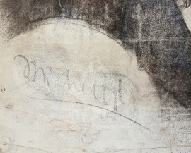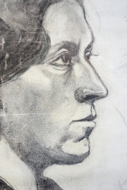 Profilo di signora, carboncino su carta, cm 43,5x27,5, reca firma Michetti, entro cornice.