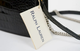 Ralph Lauren, borsetta a tracolla nera effetto coccodrillo, cm 13x24x5,5, (segni di utilizzo).