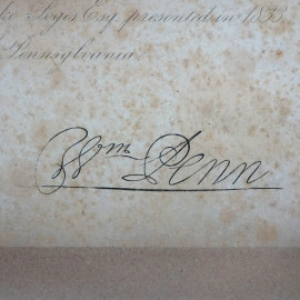 Ritratto di William Penn all'età di 22 anni, incisone di Schoff S.A. da un dipinto originale di Peter Lely (1618-1680), cm 51x39,5, entro cornice, (macchie e difetti sulla carta)