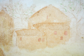 Paesaggio, litografia a colori, cm 11x15,5, es. 14/50, entro cornice.