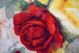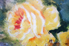 Rose, olio su cartone, cm 21x15 ca, XX secolo, entro cornice, (difetti).
