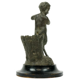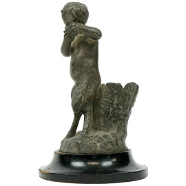 Satirello con flauto, calamaio in metallo brunito, base in legno ebanizzato, cm h 14.5