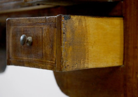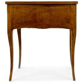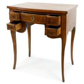 Scrittoio stile Luigi XV in legno impiallacciato, XVIII secolo, piano rettangolare, fronte a cinque cassetti decorati da riserve rettangolari filettate, quattro gambe di linea mossa, cm 83x75x48, (difetti parti sostituite).