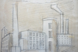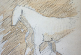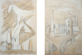 Senza titolo, due disegni a tecnica mista su carta, cadauno cm 22,5x14,5, datati 1919, entro un'unica cornice, (macchie diffuse).