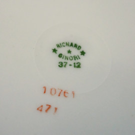 Composto da: zuppiera, 3 vassoi, 2 alzatine, insalatiera, salsiera, 31 piatti piani, 6 piatti fondi, 12 piattini da frutta.