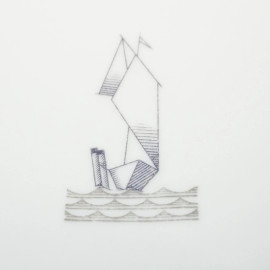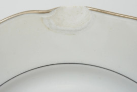 Servizio da tavola in porcellana, disegno Giò Ponti per Richard Ginori, anni '30, cavetti decorati con piccole imbarcazioni stilizzate, profili argentati, (pz. 57), misure max cm 20x37x25, (difetti).