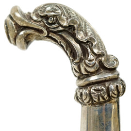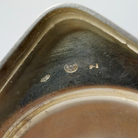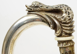 Servizio da thé/caffè stile Impero, in argento 800, seconda metà XX secolo, (pz.3), composto da teiera, caffettiera e lattiera con corpi ovoidali lisci, manici a voluta, profili a palmette, prese e beccucci zoomorfi, alt.max cm peso gr.2485