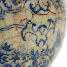 Sfera in ceramica con decori bianco e blu, XX secolo, cm h 20, (difetti).