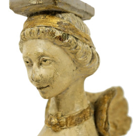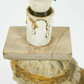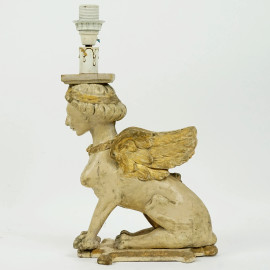 Sfinge, lampada da tavolo in legno intagliato e laccato, sorretta da base di linea sagomata, XX secolo, cm h 40 compresa candela, (difetti)